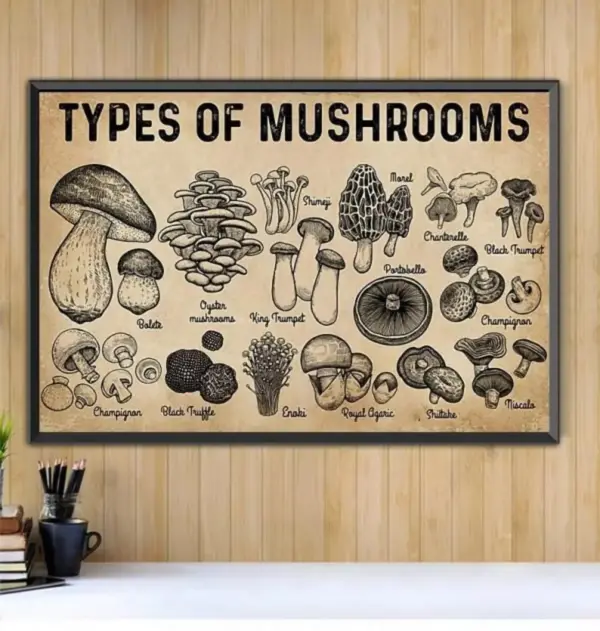 Types Of Mushrooms Horizontal Poster