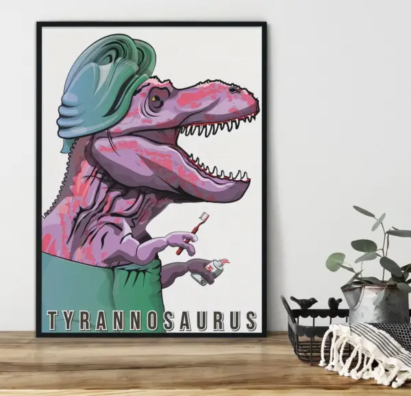 Tyrannosaurus Rex Cleaning Teeth Poster Dinosaur Bathroom Art Print Dinosaur Wall Art Funny Bathroom Decor Bathroom Poster Funny Decor