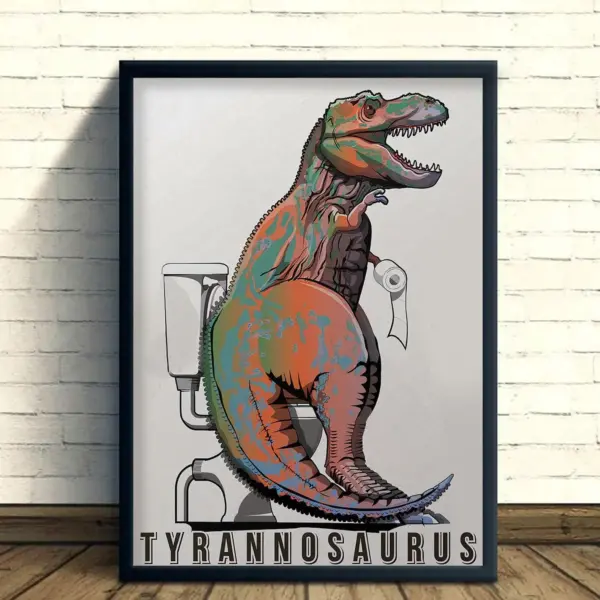 Tyrannosaurus Rex On The Toilet Poster Dinosaur Bathroom Canvas Print Dino Lover Gift Funny Bathroom Decor Bathroom Poster Funny Decor
