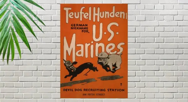 WWII German Propaganda Poster - Teufel Hunden US Marines Reproduction