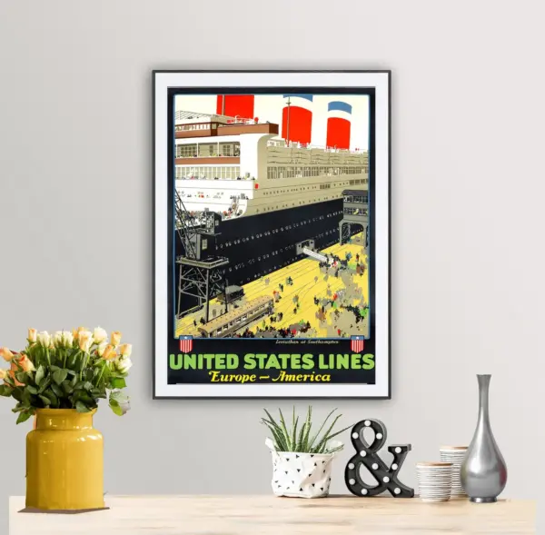 United States Lines Europe America Vintage Travel Poster Poster Paper Sticker Or Canvas Print Gift Idea