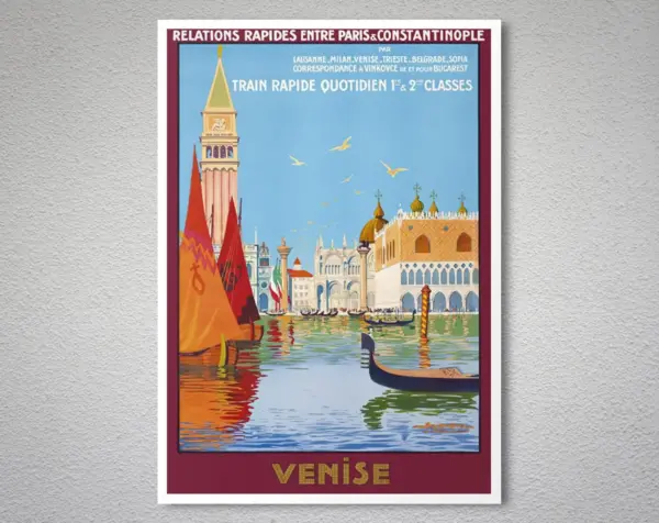 Venise Chemin De Fer De L Est Italy Vintage Travel Poster Poster Paper Sticker Or Canvas Print Gift Idea Christmas Gift