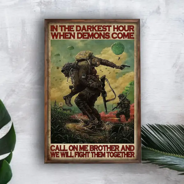 Vet Veteran S Day Military Soldier In The Darkness Hour When Demons Come Call Me Brother Poster Living Decor Poster