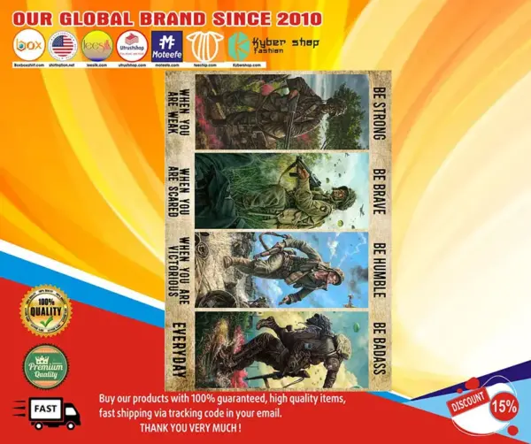 Powerful motivational poster honoring veterans' courage and resilience. Inspiring wall decor that celebrates military strength and personal growth.