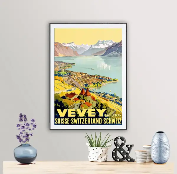 Vevey Lac Leman Suisse Switzerland Vintage Travel Poster Poster Paper Sticker Or Canvas Print Gift Idea