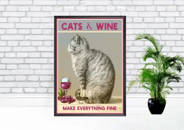 Vintage Ad Poster Cats And Wine Make Everything Fine Funny Poster Modern Art Print Wall Art Poster Print S