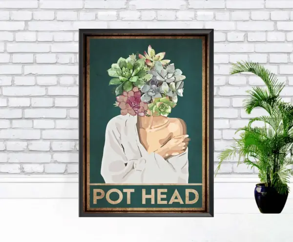Vintage Ad Poster Print Garden Flower Pot Head Poster Succulents Home Decor Gift Idea Wall Art Poster Print S
