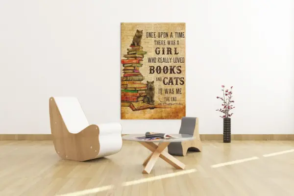 Vintage Book And Cat Once Upon A Time There Was A Girl Who Really Loved Books And Cats British Shorthair Lover Gift For Librarian Canvas Art