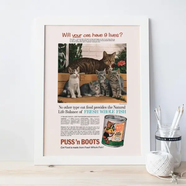 Vintage Cat Poster Cat Lover Retro Cat Food Ad Poster Retro Mid Century Ad High Quality Reproduction