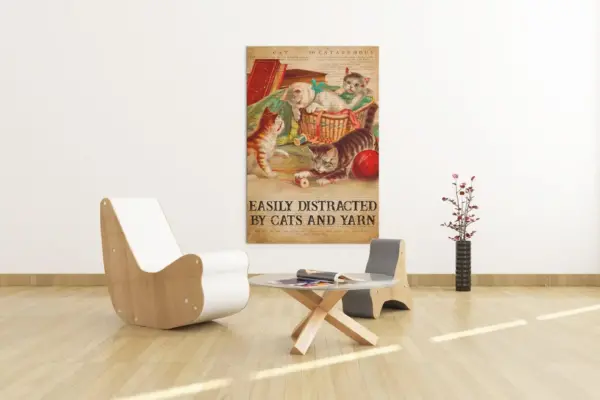 Vintage Collection Cat Artwork Easily Distracted By Cats And Yarn Animal Farm Yarn Cat Lover Gift For Mom Daughter Knitting Wall Canvas Art