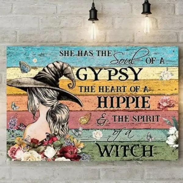 Vintage Girl Poster She Has The Soul Of A Gypsy Print The Spirit Of A Witch Wall Art The Heart Of A Hippie Poster Mysterious Girl Art