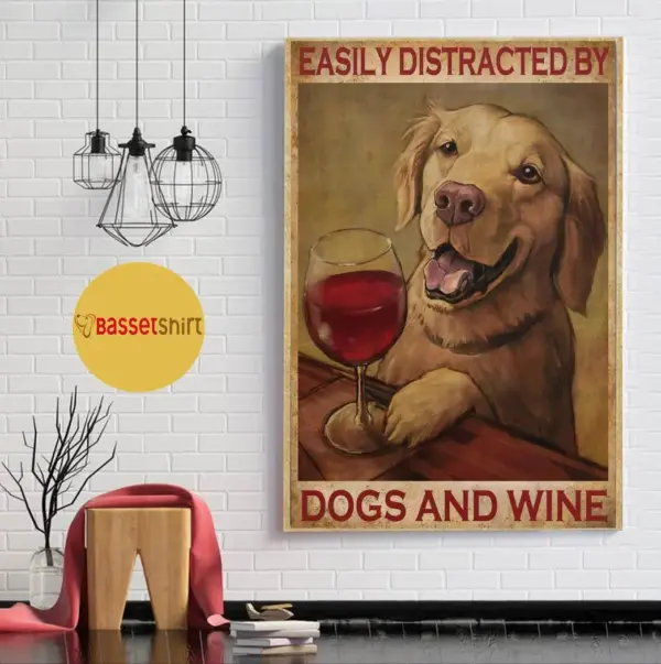 Vintage Golden Retriever Easily Distracted By Dogs And Wine Wall Art