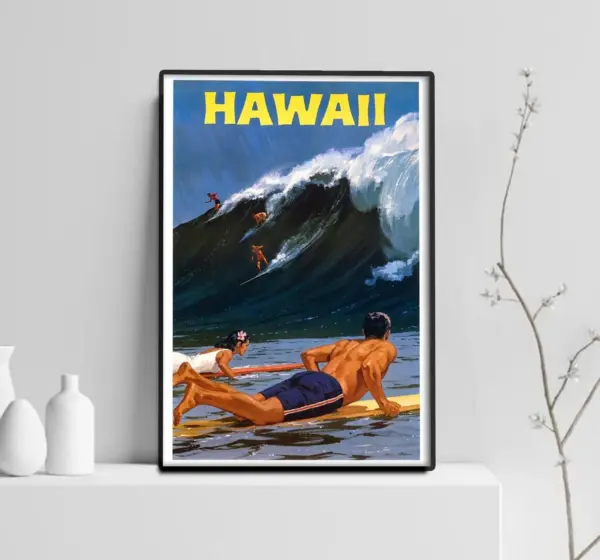 Vintage Hawaii Travel Poster Restored Poster Framed Matte Canvas