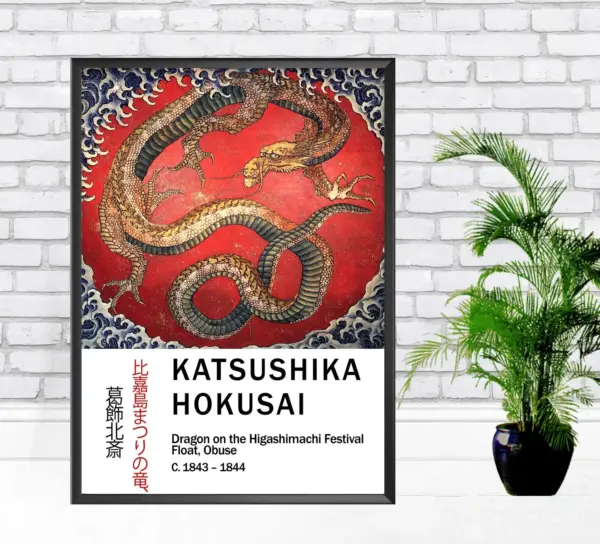 Vintage Japanese Print Hokusai Dragon On The Higashimachi Festival Float Obuse Ukiyoe Art Print Wall Art Poster Print S