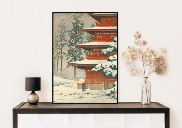 Vintage Saishoin Temple Snow Scene - Traditional Japanese Woodblock Art Print