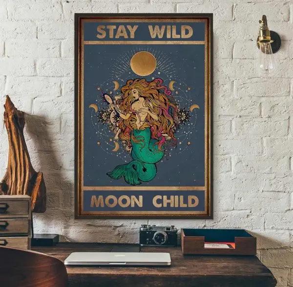 Vintage Mermaid Stay Wild Moon Child Canvas