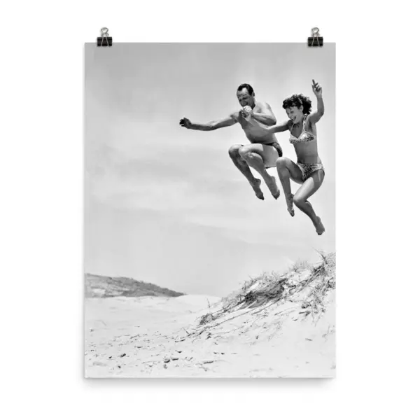 Vintage Photography Happy Couple Beach Black And White Photo Museum Quality Print