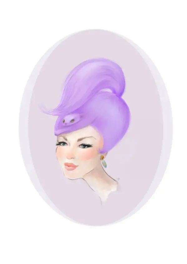Vintage Pinup Girl Art Print Poster Lana Cat Lover Purple Hair