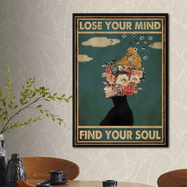 Vintage Poster Lose Your Mind Find Your Soul Vintage Print Vinyl Head Print Music Gift Idea Music Wall Art Girl Floral Wall Print