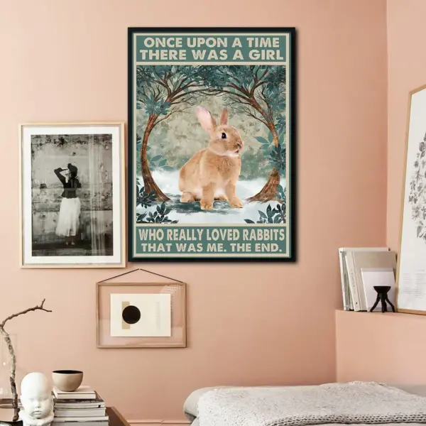 Vintage Rabbit Poster Canvas Once Upon A Time There Was A Girl Who Really Loved Rabbit Rabbits Canvas Wall Art Rabbit Lover Gift