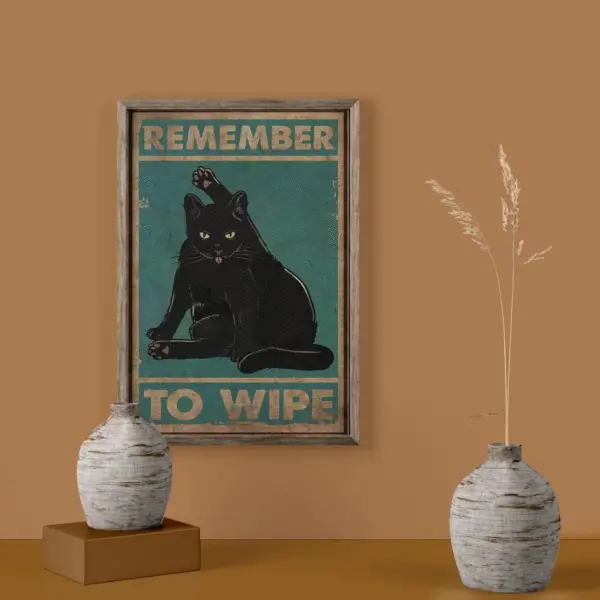Vintage Remember To Wipe Black Cat Poster Black Cat Lover Gifts Bathroom Wall Art Farmhouse Signs Black Cat Print