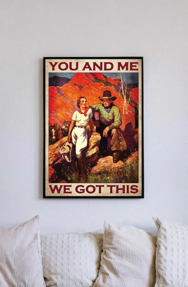 Cowboy Couple Poster - Vintage Retro Western Wall Art Print