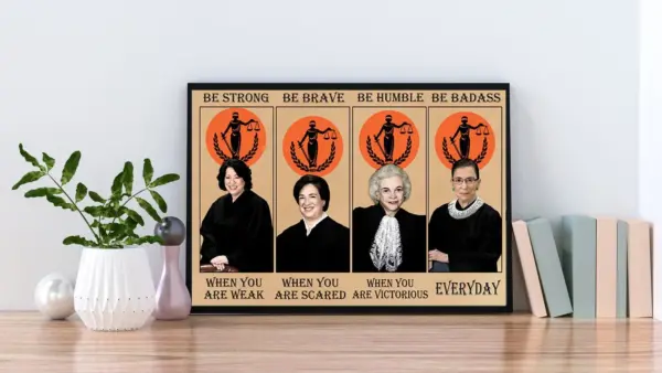 Empowering Ruth Bader Ginsburg-inspired wall decor featuring motivational quote about strength and courage, perfect for home or office inspiration.