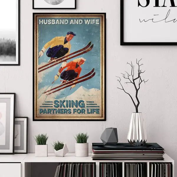 Vintage Skiing Couple Husband Wife Skiing Partners For Life Poster Gift For Skier Couple Vintage Skiers Poster Wall Art 2603