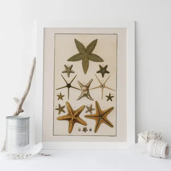High-quality vintage starfish print. Perfect nautical wall art for home or office. Antique starfish diagram reproduction. Old nature print.