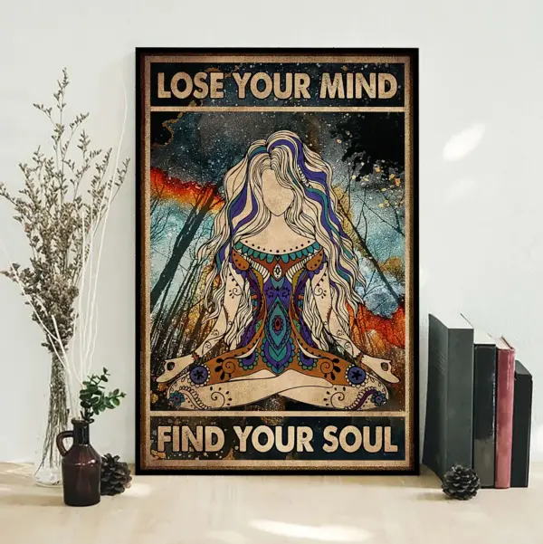 Vintage Yoga Girl Poster Lose Your Mind Find Your Soul Poster Girl Loves Yoga Print Yoga Lovers Gift Lovely Girl Wall Art 1801