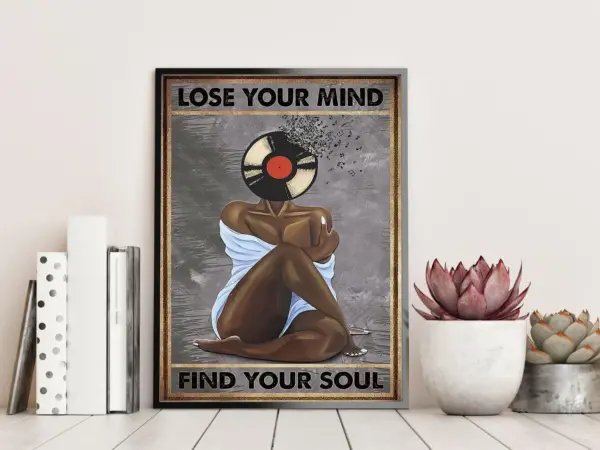 Vinyl Poster Lose Your Mind Find Your Soul Poster Black Girl Wall Print Music Wall Decoration Music Poster Retro Girl Music Art