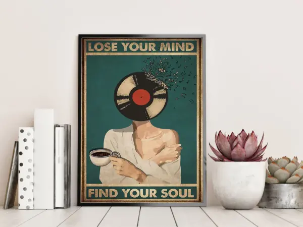 Vinyl Poster Lose Your Mind Find Your Soul Poster Girl Drink Coffee Wall Print Music Wall Decoration Music Poster Retro Girl Music Art