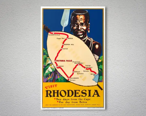 Visit Rhodesia Afrique Vintage Travel Poster 1930S Poster Paper Sticker Or Canvas Print Gift Idea Christmas Gift