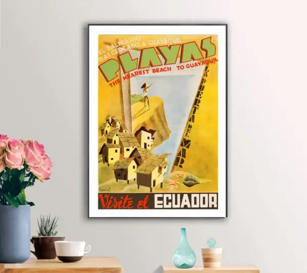 Visite El Ecuador Playas Guayaquil Vintage Travel Poster Poster Paper Sticker Or Canvas Print Gift Idea
