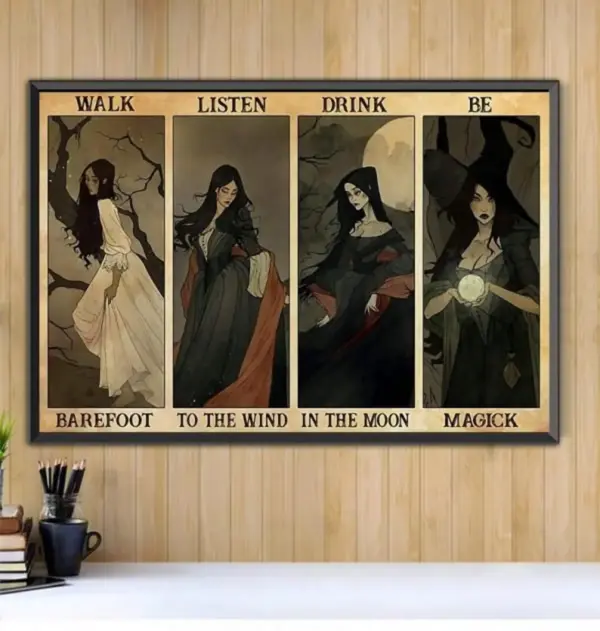 Walk Listen Drink Be Barefoot To Wind In Moon Magick Horizontal Poster