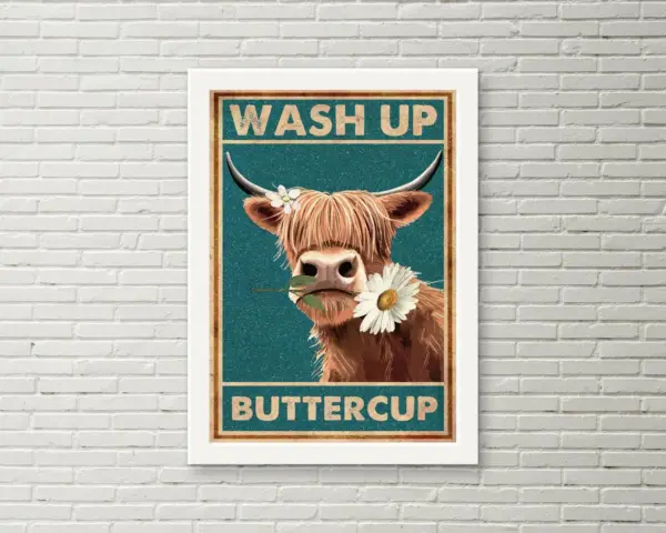 Wash Up Buttercup Poster Cow Poster Funny Cow Wall Art Bathroom Hanging Decor Cow With Flower Poster Nice Butt Poster Home Decor