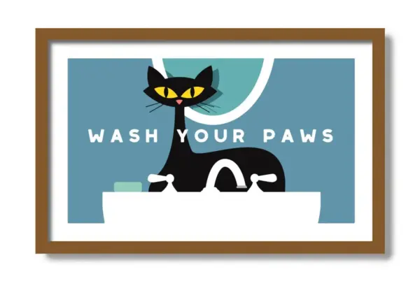 Wash Your Hands Bathroom Wall Decor Black Cat Art Print Laundry Room Decor Mid Century Modern Wall Art Bath Sign Cat Lover Gift