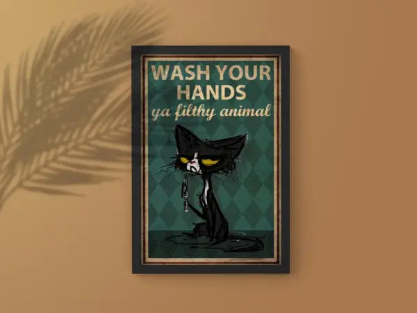 Wash Your Hands Ya Filthy Animal Vintage Poster Funny Black Cat Print Bathroom Wall Art Cat Artwork Funny Farmhouse Signs Sign For Home