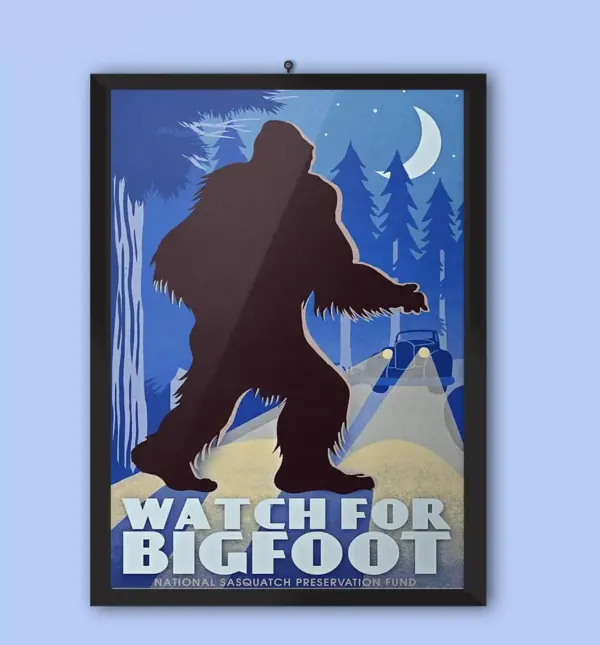 Watch For Bigfoot Poster Framed Matte Canvas