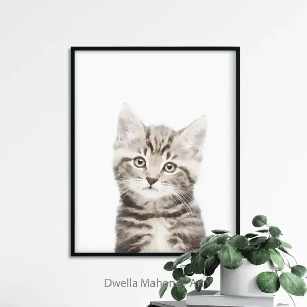 Watercolor Cat Painting Grey Tabby Cat Art Cat Art Print Nursery And Girls Room Decor