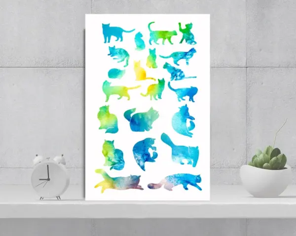 Watercolor Cat Silhouette Poster Wall Art Girl And Boy Room Decoration Cat Lover Painting Crazy Cat Lady Gift Cute Kitten Art Present
