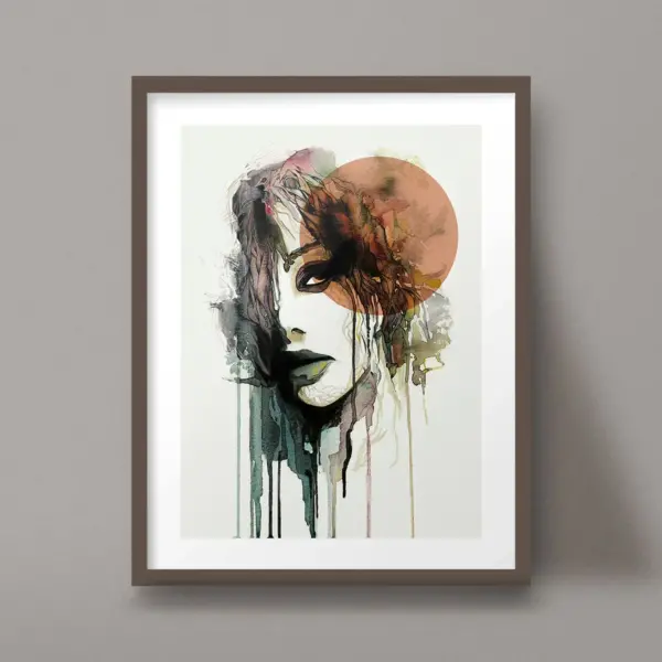 Watercolor Portrait Art Print Organic Dripping Paint Female Face