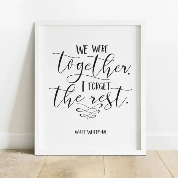 We Were Together I Forget The Rest Poster Art Walt Whitman Quote Apartment Decor Girlfriend Gift Bedroom Quote Husband Gift