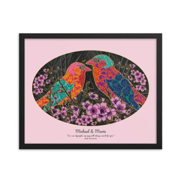 Wedding Milestone Anniversary Art Personalized Partnership Gift Framed Poster Nightingale Pink