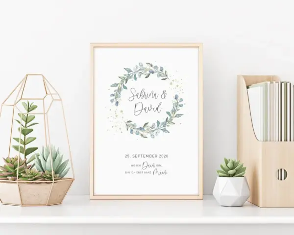 Wedding Poster Gift Wedding Couple Poster Wedding Day Mother S Day Eucalyptus Gold Blue Green