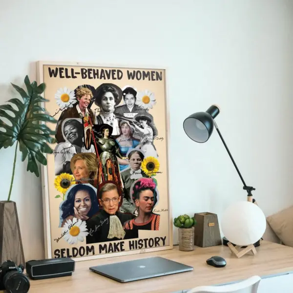 Well Behaved Women Seldom Make History Poster Canvas Frida Kahlo Maya Angelou Amelia Earhart Ruth Bader Ginsburg Women Power Wall Art