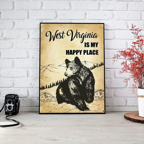 West Virginia Is My Happy Place Poster West Virginia Poster West Virginia Wall Art West Virginia Print West Virginia Art Bear Poster