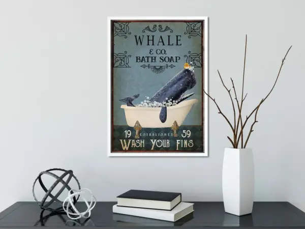 Whale Wash Your Fins Poster Whale Art Print Love Whale Artwork Whale Poster Wall Decoration Bathroom Poster Hanging Poster Best Gift Ever