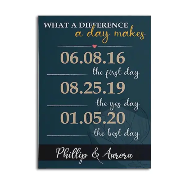 What A Difference A Day Makes Couple Anniversary Poster We Met We Married We Live Family Dates