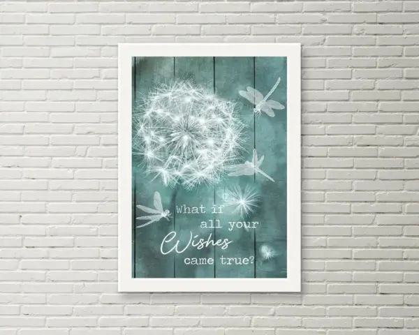 What If All Your Wishes Came True Poster Dandelion Poster Print Dandelion Printable Dandelion Wall Decor Dragonflies Poster Print Decor